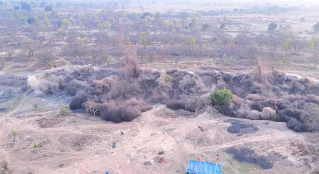 प्रथम चरण में अवैध मुहानों को बंद करने हेतु ड्रिलिंग मशीन के माध्यम से 160 होल्स निर्मित कर कंट्रोल ब्लास्टिंग के माध्यम से ध्वस्त किया गया ।