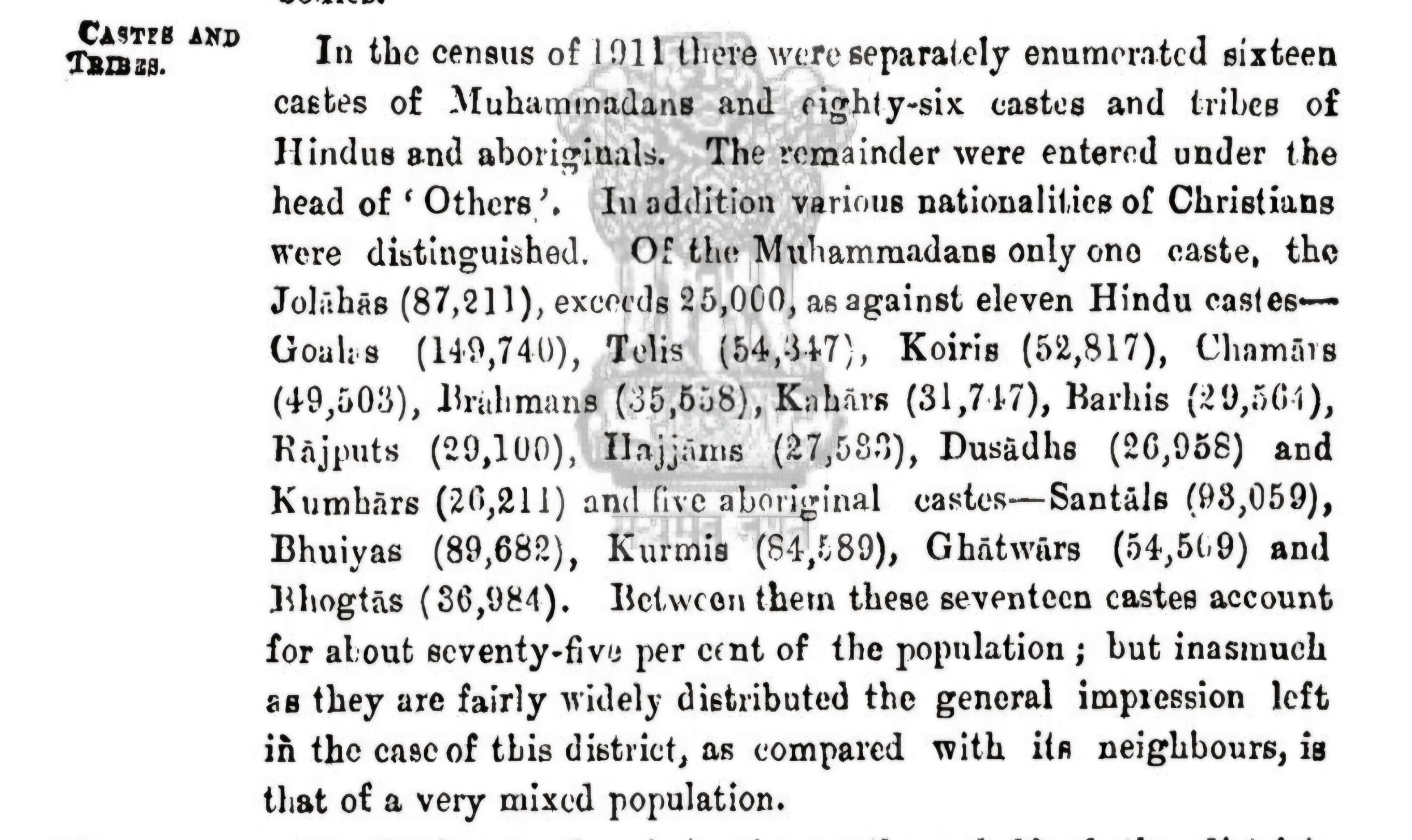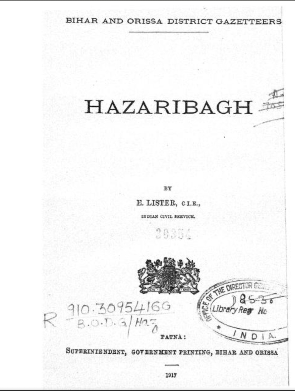 बिहार एंड उड़िसा डिस्ट्रिक्ट गजेटियर, हजारीबाग 1917 के अनुसार कुड़मि एबओरिजनल आदिवासी हैं। जिसकी भाषा कुड़मालि है। ब्रिटिश काल 1911 में कराये जनगणना को 1917 में पटना से प्रकाशित किया गया है। जिसमें जातिय संरचना के साथ जनसंख्या विस्तार का भी उल्लेख है। के अनुसार कुड़मि को संथाल, भुइंया , भोकता और घटवाल के साथ एबओरिजिनल कास्ट माना है। पेज़ नं०-84, ट्राइब्स एंड कास्ट्स में कुड़मि की आबादी 84,580 बताया गया है। गजट में कुड़मालि भाषा का भी जिक्र है बोलने वालों की संख्या 7000 हजार बतायी गई है। खोरठा का उल्लेख नहीं है। हालांकि हिंदी-उर्दू, मुंडारी, द्रविड़ियन और अन्य का काॅलम दर्ज है।