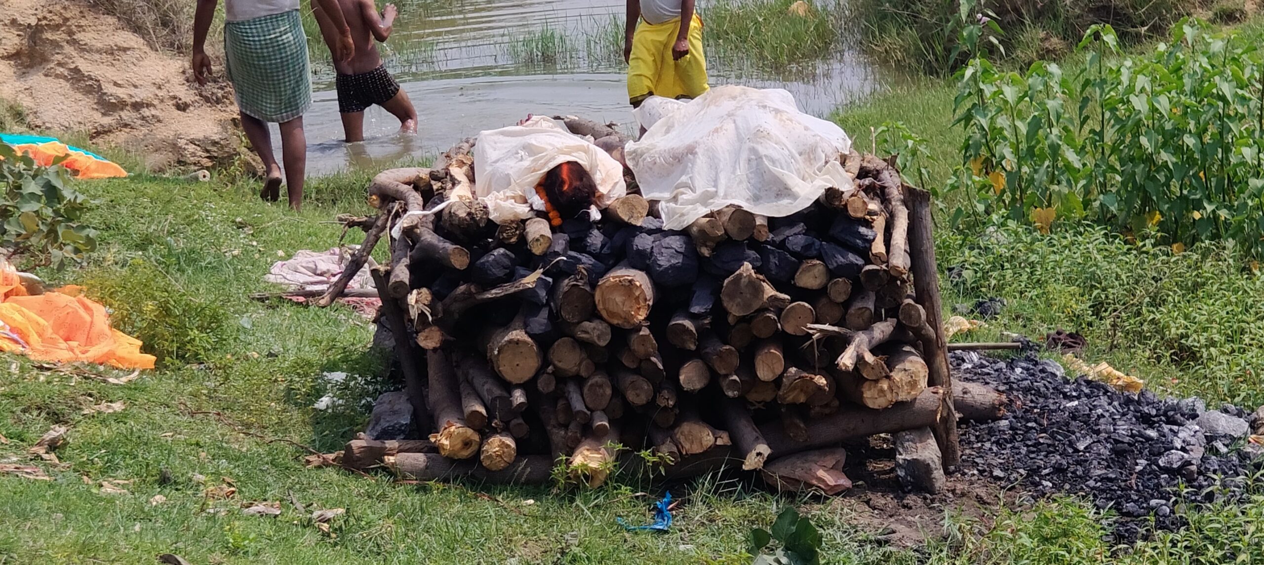 Kasmar (Bokaro): पति और पत्नी के लिए एक ही चिता सजाया गया और एक साथ ही दंपति का शवदाह हुआ। तीन कर्म और दस कर्म समेत सभी मृत्यु रश्म एक साथ होगा। छोटे बेटे ने दी दोनों को मुखाग्नि। उस वक्त दाह संस्कार में शामिल सभी लोग मायुस और गमगीन हो गये।