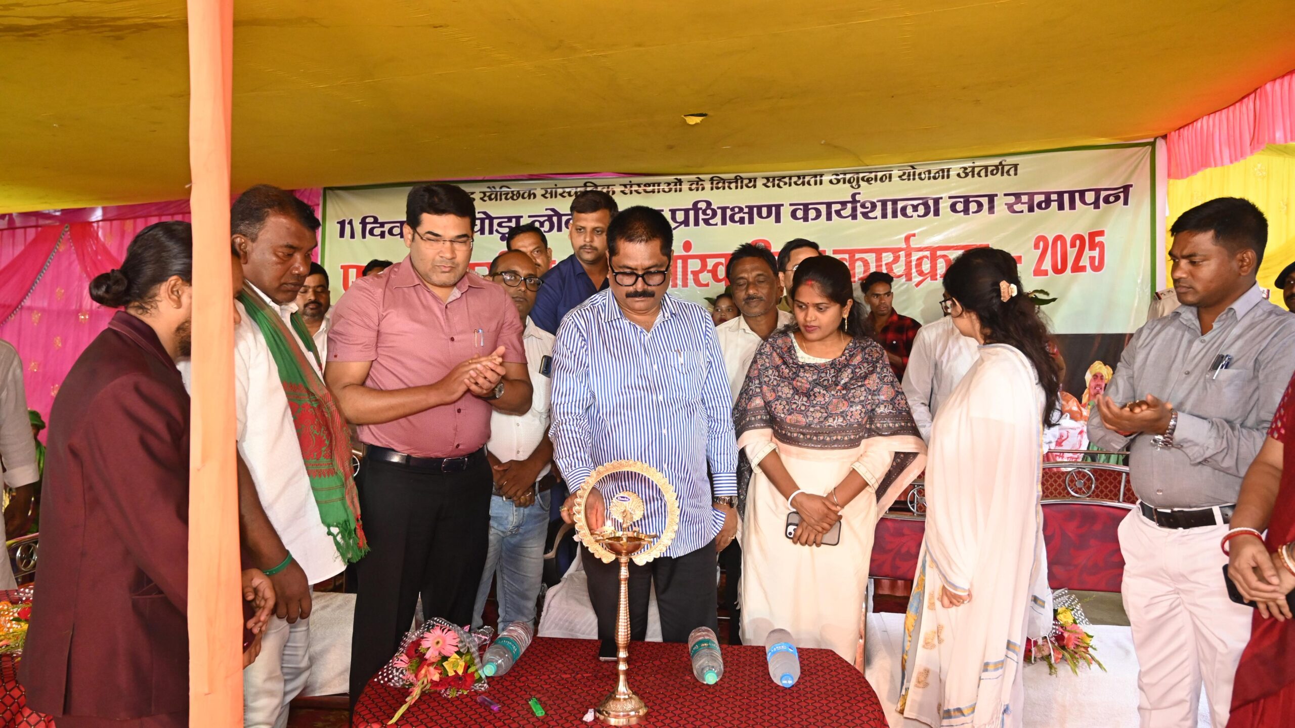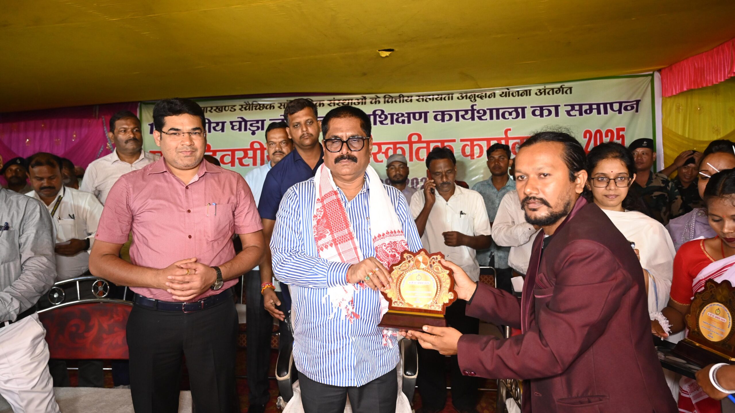 मंत्री श्री प्रसाद ने शुक्रवार को राज्य सरकार के पर्यटन, कला-संस्कृति, खेल-कूद एवं युवा कार्य विभाग की ओर से सांस्कृतिक कार्यक्रमों को वित्तीय सहायता अनुदान योजना के तहत कसमार प्रखंड के हरनाद स्थित पीएमश्री प्लस टू हाई स्कूल परिसर में जागो-जगाओ सांस्कृतिक कला मंच के द्वारा 11 दिवसीय घोड़ा लोकनृत्य प्रशिक्षण सत्र के समापन समारोह में आयोजित भव्य सांस्कृतिक कार्यक्रम के उद्घाटन के अवसर पर बोल रहे थे। मंत्री श्री प्रसाद का कार्यक्रम स्थल पंहूचने पर भव्य स्वागत किया गया।