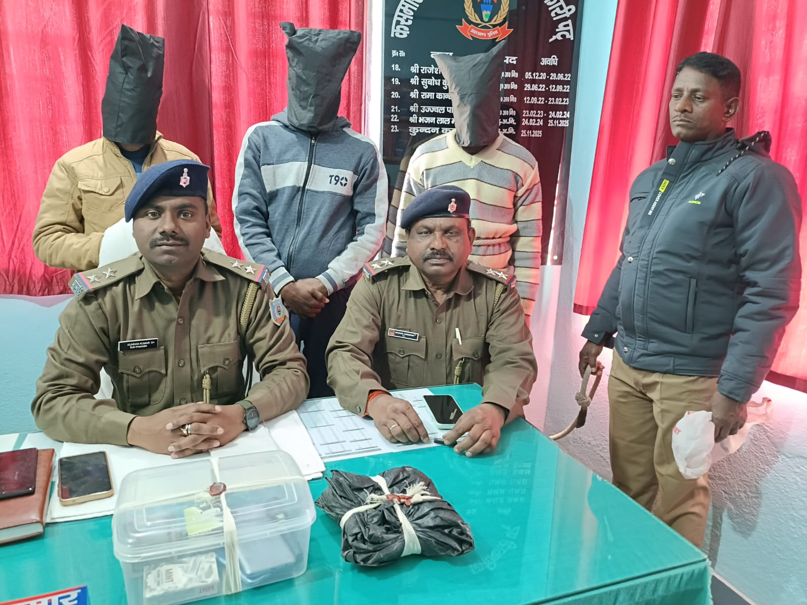 Kasmar (Bokaro) : कसमार थाना क्षेत्र के दांतू गांव के जोरियापार टोला में शनिवार शाम कसमार थाना प्रभारी कुंदन कुमार के नेतृत्व में गुप्त सूचना के आधार पर औचक छापेमारी किया। इस दौरान जुआअड्डा पर्दाफाश हुआ। मौके पर तीन जुआरियों को रंगेहाथ गिरफ्तार कर जेल भेज दिया है। वहीं अन्य दर्जन भर भागने में सफल रहे। साथ ही जुआ अड्डे से दो पैकेट ताश पत्ते दो मोबाइल फोन, टार्च लाईट एवं प्लास्टिक दरी बरामद किया है। गिरफ्तार जुआरियों में राजकुमार नायक (27) रवीन्द्र नायक (26) व कैलाश नायक (40) शामिल हैं। रविवार को तीनों को जेल भेज दिया है। बताया गया कि स्थानीय ग्रामीणों से बार-बार शिकायत आ रही थी कि दांतू जोरियापार टोला में महुआ पेड़ के नीचे अवैध जुआ का कारोबार होता है। जिसमें जुआरियों द्वारा नशापान कर देर रात तक हो हल्ला किया जाता हैं। जिससे आम ग्रामीण को डर व भय का माहौल में रहते है। छापेमारी दल में सअनि सत्येन्द्र कुमार, पुअनि सुन्दर हेंब्रम, हवलदार राजकिशोर पासवान, रोहित कुमार रंजन, रामेश्वर महतो, अशोक पूर्ति शामिल हैं।
