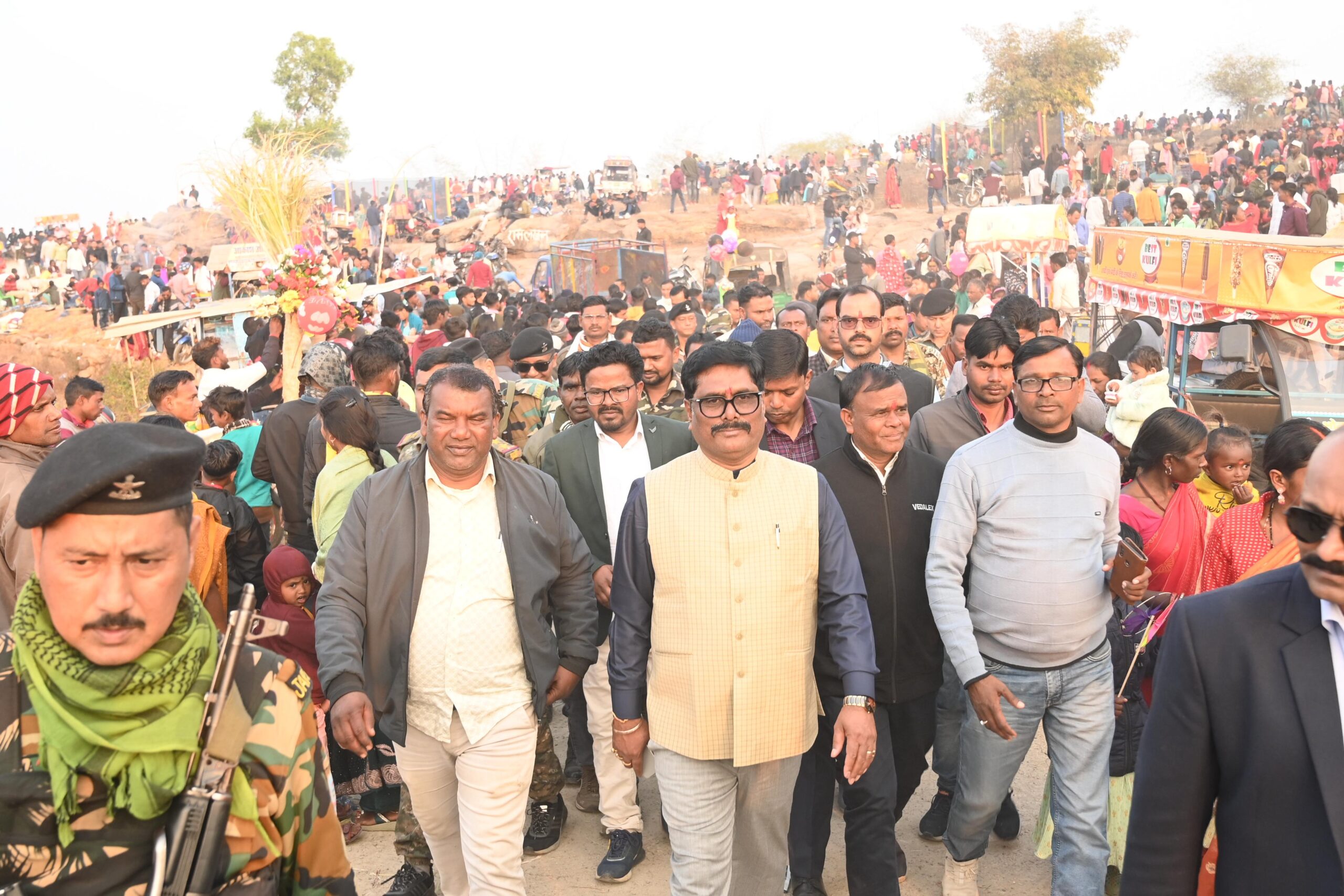 Kasmar : कसमार प्रखंड के मंजूरा स्थित टुंगरी मेला में इस वर्ष ऐतिहासिक भीड़ उमड़ी। कसमार- बरलंगा हाईवे स्थित चौक से टुंगरी मेला तक लगभग डेढ़ किलोमीटर तक लोगों का हुजूम उमड़ पड़ा। मकर संक्रांति के तीसरे दिन यहां टुसू मेला का आयोजन होता है। मेले में कसमार प्रखंड के अलावा जरीडीह व पेटरवार समेत अन्य इलाकों से भी काफी तादाद में लोग पंहुचे। बच्चे युवक-युवती, महिला- पुरुष काफी उत्साह और उमंग के साथ पारंपरिक टुसू लिए गीत गाते हुए पंहुचे। मेले में डीजे साउण्ड लिए भी युवक पंहुचे थे। सामने मैदान में पारंपरिक मुर्गा लड़ाई का आयोजन भी हुआ। मेले में मुख्य रूप से सूबे के पेयजल एवं स्वच्छता तथा उत्पाद एवं मद्य निषेध मंत्री योगेंद्र प्रसाद महतो, गिरिडीह सांसद चंद्रप्रकाश चौधरी शामिल हुए। मंत्री श्री महतो ने मेला कमेटी व लोगों की हौसला अफजाई करते हुए आपसी सौहार्द एवं शांति पूर्वक मेले का मनोरंजन कर आनंद उठाने की अपील की। वहीं सांसद श्री चौधरी ने भी टुसू पर्व की संस्कृति को विश्व की महान संस्कृति में से एक बताते हुए आगे भी जीवंत बनाये रखने की बातें कही। मौके पर स्थानीय जिप सदस्य अमरदीप महाराज, मुखिया ममता देवी, नरेश कुमार महतो, शिशुपाल महतो, संजय महतो, प्रकाश प्रजापति, वंशीराम महतो, पुसू घांसी, द्वारिका प्रसाद महतो, हरेंद्र महतो, रविशंकर महतो, अभिसर महतो, अशोक महतो समेत अन्य ग्रामीण मौजूद थे।